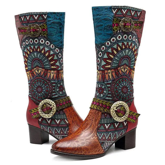 Colorblock Lace‑Up Boots – Boho Retro Handmade | Mint Crush
