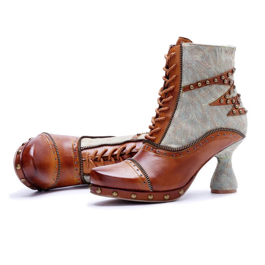 Vintage Carnival Lace‑Up Boots – Retro Statement | Mint Crush