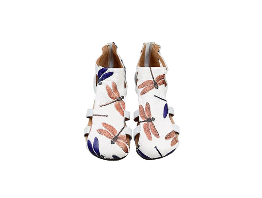 Retro Dragonfly Leather Sandals – Handmade Flats