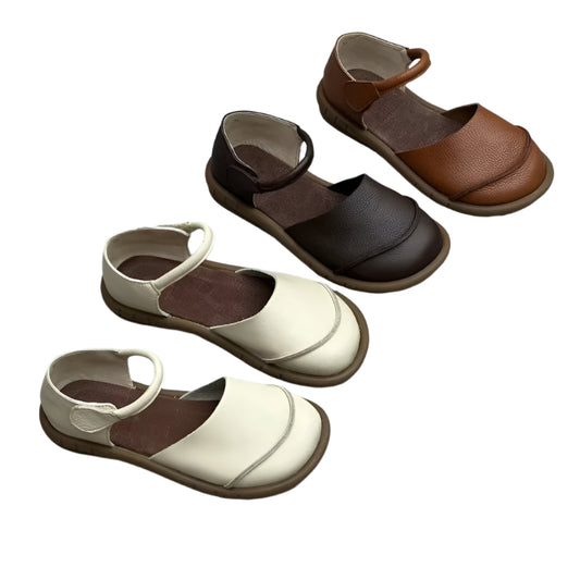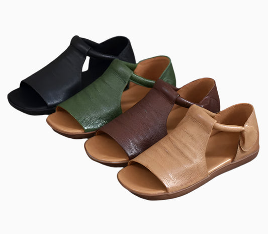 Retro Leather Flat Sandals – Handmade Comfort Style | Mint Crush