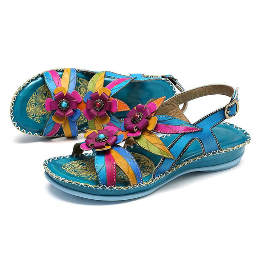 Vintage Flower Leather Sandals – Colorful Retro | Mint Crush