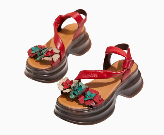 Vintage Petal Platform Sandals – Handmade Leather Retro Style | Mint Crush