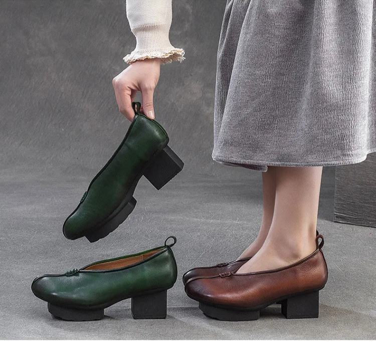 Bring timeless retro charm to your everyday look with these ballerina-inspired block heels. Handmade in genuine leather and designed for all-day comfort, they feature a softly rounded toe and a flattering block heel that gives just the right amount of height. Perfect for twirling through vintage markets or adding a feminine touch to any outfit.